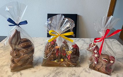 Hand gegossen, verziert und verpackt. Meine Schokoladenfiguren, perfekt zum Verschenken oder selber geniessen.