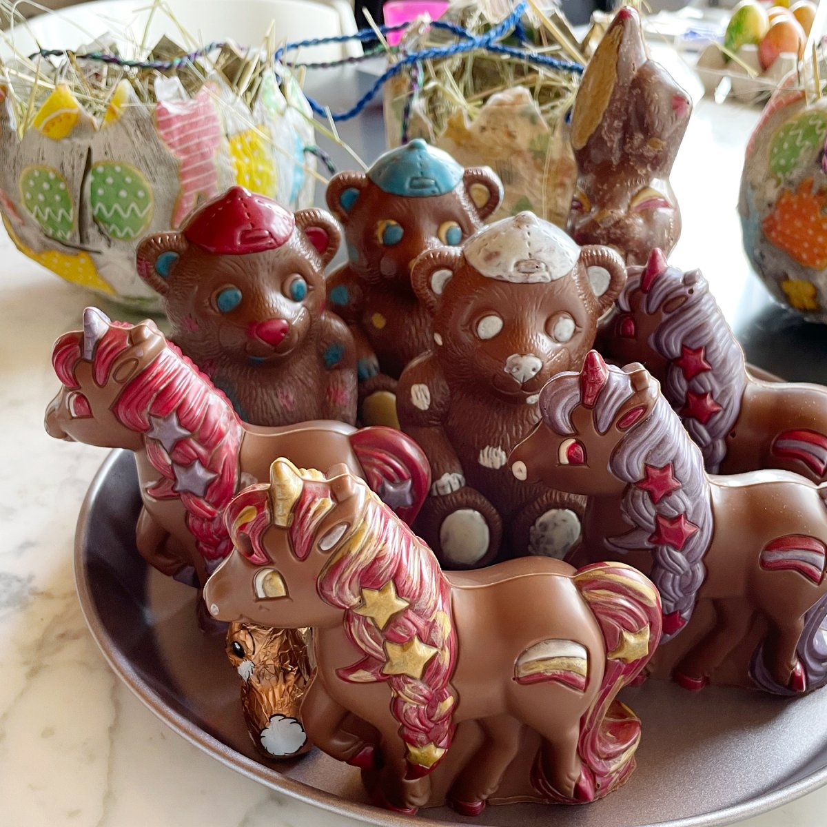 Hand gegossen, verziert und verpackt. Meine Schokoladenfiguren, perfekt zum Verschenken oder selber geniessen.